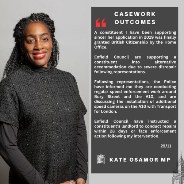 Kate Osamor MP – Weekly Update – Friday 29 November 2024