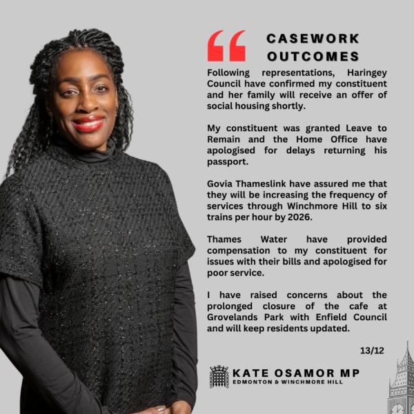 Kate Osamor MP – Weekly Update – Friday 13 December 2024