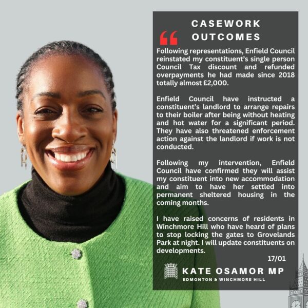 Kate Osamor MP – Weekly Update – Friday 24 January 2025