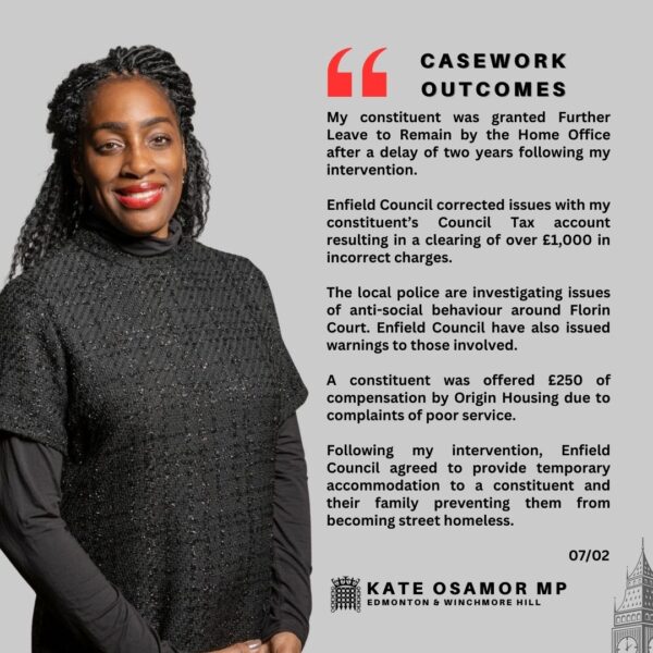 Kate Osamor MP – Weekly Update – Friday 7 February 2025