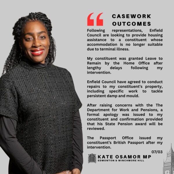 Kate Osamor MP – Weekly Update – Friday 7 March 2025